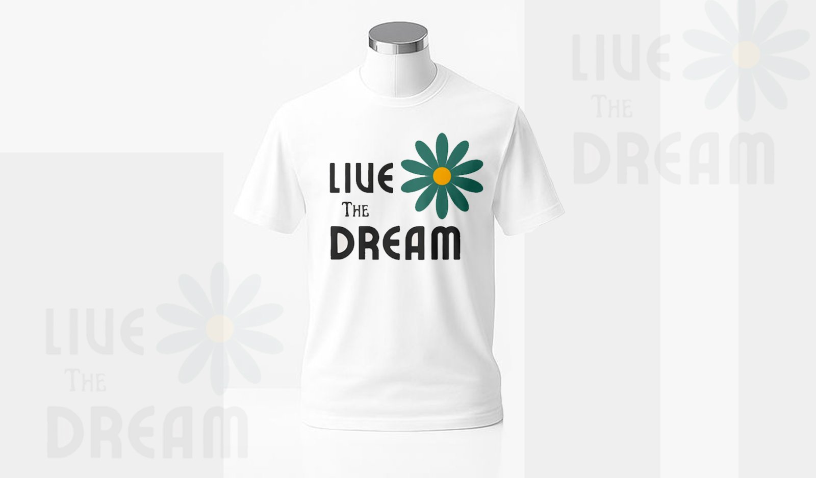 Live the Dream” – Minimal Floral White Cotton Tee